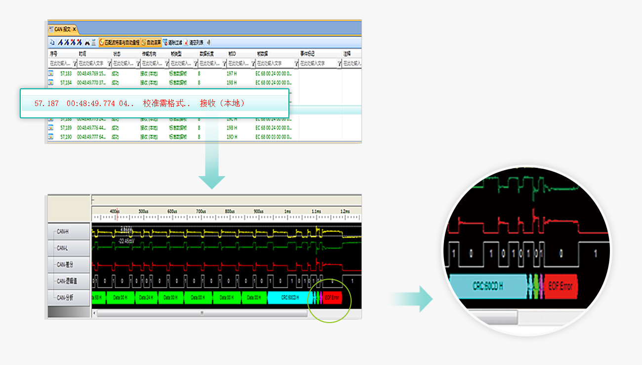 新能源汽車主機(jī)廠和零部件企業(yè)在CANDT一致性測試后,對于測試報告中顯示測試不通過的問題,可以用CANScope進(jìn)行故障定位和排查,加快CAN總線穩(wěn)定的研發(fā)速度。
