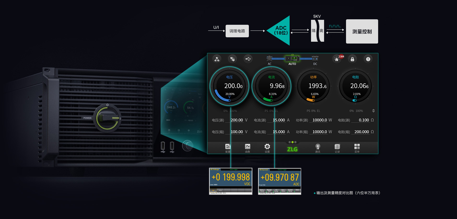 產(chǎn)品采用18位ADC,具有精確且豐富的測量功能,可兼顧穩(wěn)態(tài)信號測量以及瞬態(tài)信號捕捉,并保證系統(tǒng)具備高精度、低噪聲以及高動態(tài)性能。