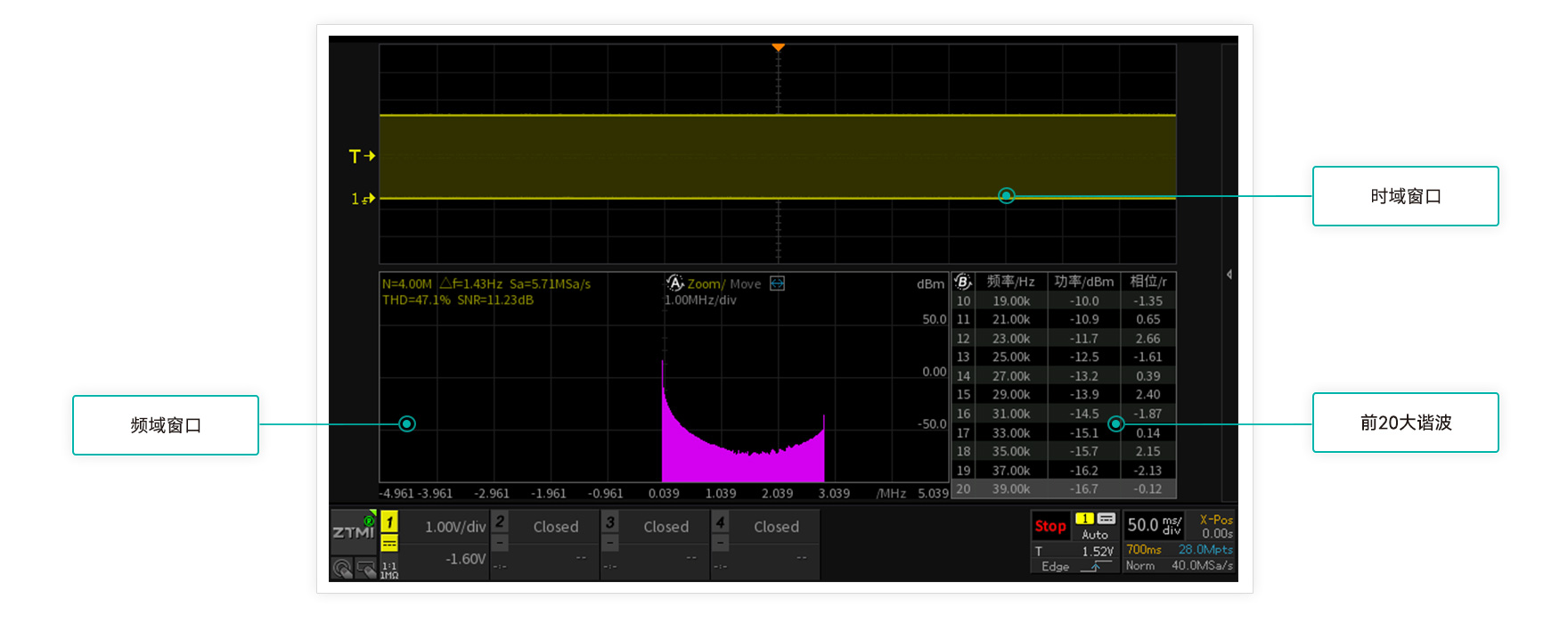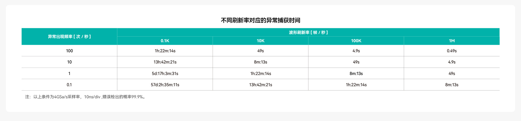 波形刷新率越高,死區時間就越短。ZDS4000系列示波器,標配1M次波形刷新率,配合模板觸發,讓您最大概率的發現并捕獲異常信號。