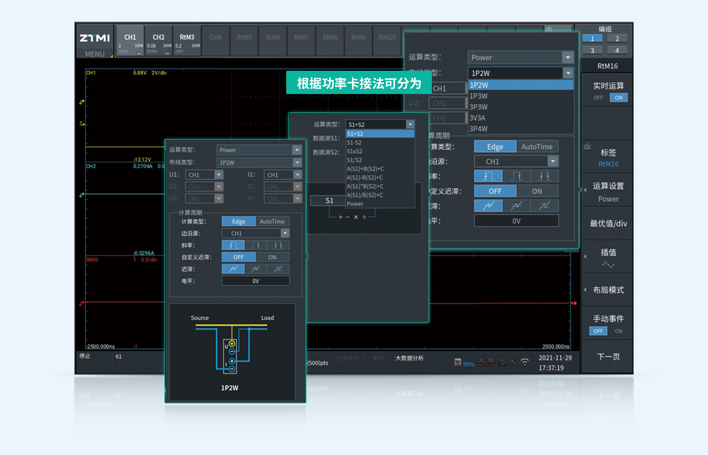 波形運算的實時性可直接體現產品的性能,ZDL6000和ZDL5000在100M采樣率下的波形運算速度小于100微秒,非常適用于高速計算場合,如無線充電的功率運算、電感、電容的功耗運算等。