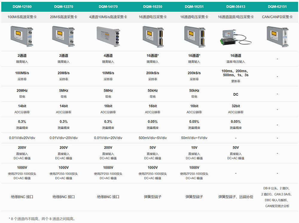 主機提供8個標準化擴展插槽(如圖1),用戶可以根據實際測試項目需求,從電壓、溫度、CAN總線等不同類型的采集板卡中自由組合(板卡類型如圖2),實現按需配置。